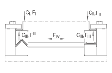 • 極限載荷: 在主要載荷方向上100mm長的保持架的理論長度。對于保持架有效長度的極限承載的計算: Fw 1/2/3 = Fw 1/2/3 x (Lk - 2e + t) / 100 Z = ((Lk - 2e) / 100) + 1 = 總數