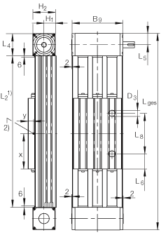 - L2 = 總行程 + L1 + 12 L tot = 總行程 + L1 + 12 + 2 x L4 總行程= 有效行程 + 2 x S(mm) 注意:允差S指一個安全范圍,應該至少為85 mm。 最大支承軌長度8000 mm。